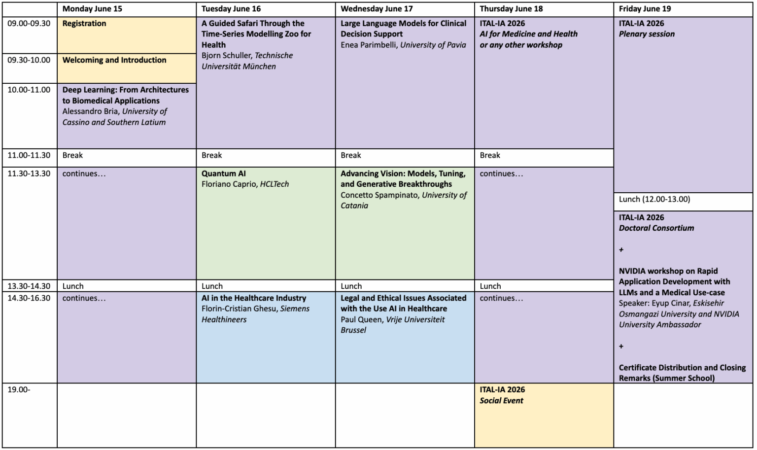 The Summer School will be held as a joint event with Ital-IA 2026, a key forum for the Artificial Intelligence research community. The first three days will focus on lectures and hands-on sessions on AI in Health and Life Sciences. The final two days will take place within Ital-IA 2026, including the Workshop on AI for Medicine and Healthcare, the Plenary Session and the Doctoral Consortium Workshop.